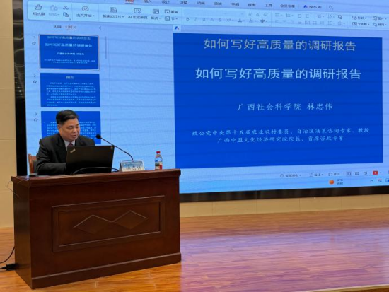 在中共梧州市委统战部、中国致公党梧州市委的大力支持和热情邀请下,林忠伟(广西)产教科咨政联盟团队6-7日赴梧州考察调研,并开展参政议政工作交流活动。林忠伟教授授课的《如何写好高质量的咨政(调研)报告》深入浅出,通俗易懂,满接地气,获得赞誉,听课者纷纷表示获益匪浅。本次参政议政交流活动,初步了解了梧州的优势与产业发展的趋势,对梧州再振雄风充满信心。