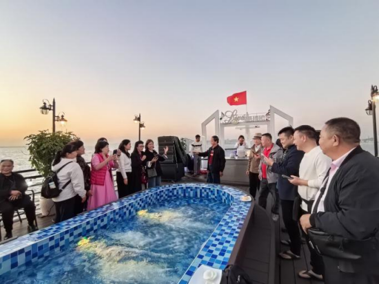 12月14日晚,中越文教交流夜宴在越南下龙湾畔盛大举行。赤幕如霞,星河似练,两国同仁以“独弦弹越韵、奥黛舞春潮”的热烈,将气氛推向高潮。